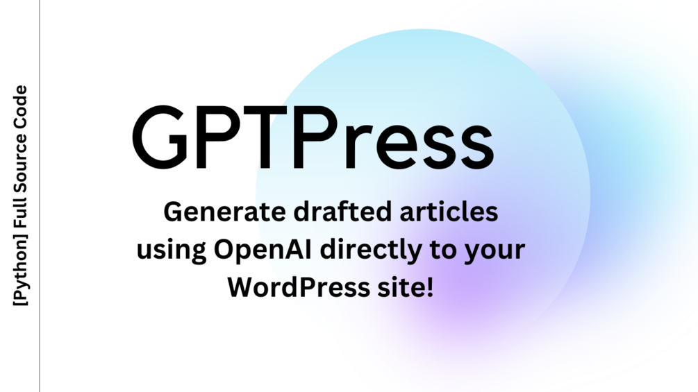 [Python][WordPress] GPTPress - Generate Articles using OpenAI and instantly draft to WordPress | Full Source Code
